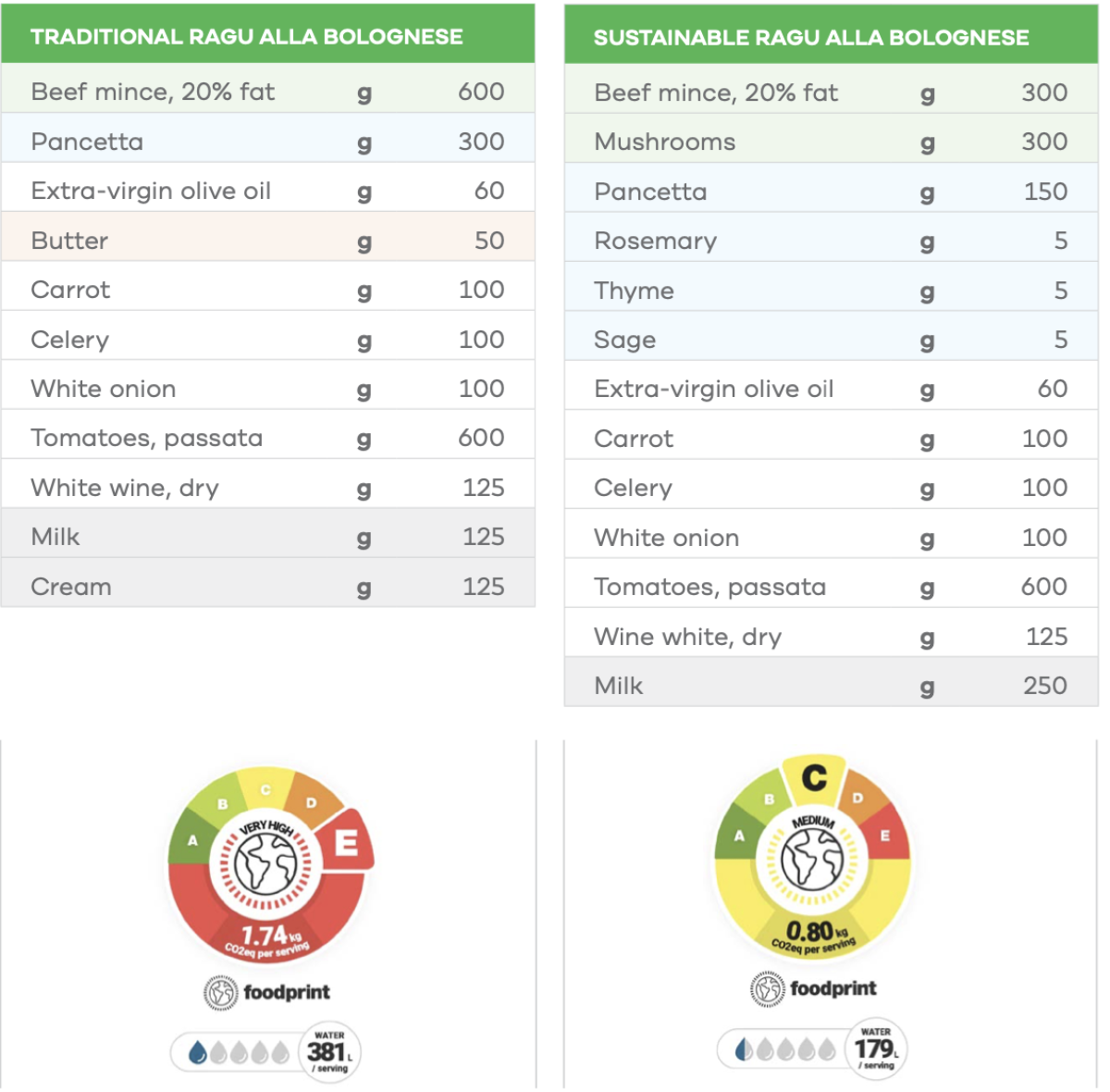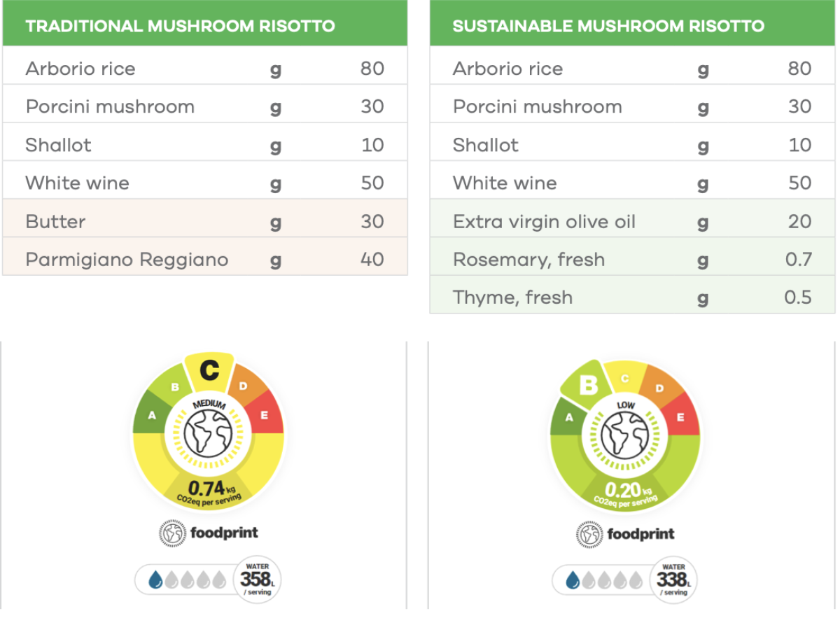 Nel documento, per esempio, si ribadisce che un pasto ecologico deve avere un’impronta di carbonio inferiore a 1 kg di equivalenti di CO2 e un’impronta idrica inferiore a 1.000 litri. O ancora, che i contorni generalmente hanno un basso impatto ambientale, pari a circa 100 g di equivalenti di CO2.