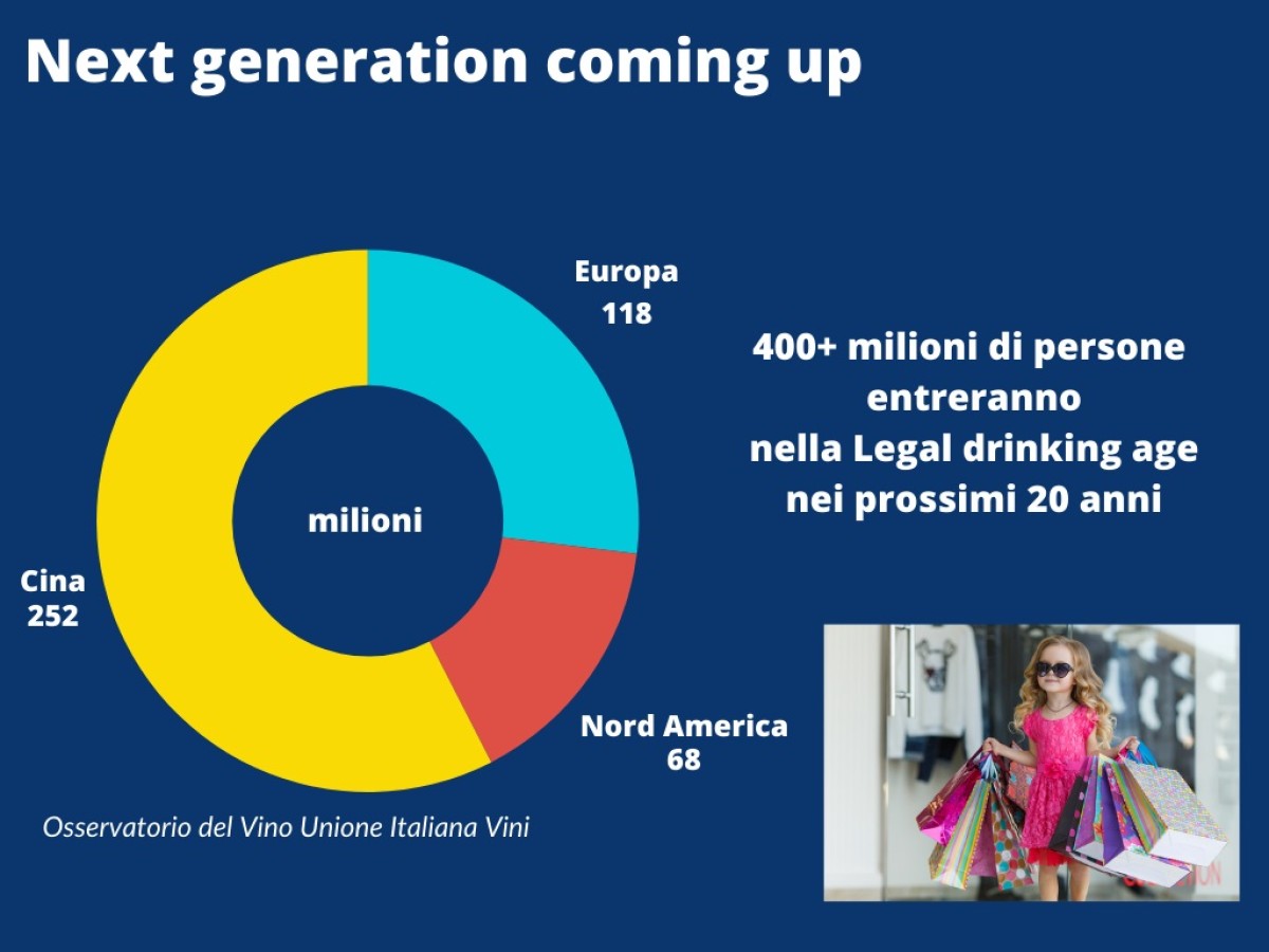«Stiamo assistendo a una rivoluzione dei consumi che per diversi motivi sta riscontrando una forte accelerazione. Serve mettersi in gioco per attivare il ricambio generazionale: nei prossimi vent’anni ci saranno nel mondo 400 milioni di giovani consumatori con cui il vino potrà e dovrà dialogare per fare parte dell’esperienza, non solo di esserla», ha detto il responsabile dell’Osservatorio Uiv, Carlo Flamini.