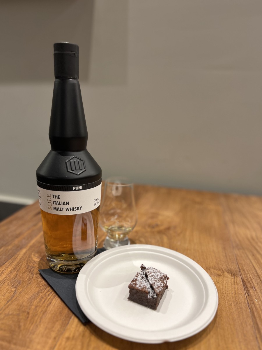 Chiude la degustazione un tortino al cioccolato fondente abbinato a un whisky italiano, un fenomeno recente per produzione e diffusione che sta riscuotendo più che positivi riscontri, Sole The Italian Malt Whisky invecchiato 4 anni, il cui aroma è un mix di note fruttate e miele, vaniglia e agrumi. Non a caso, il gusto di miele si mischia a note fruttate, di caramello e di spezie che ben si sposano con il cioccolato. «Questo perché il whisky si esalta con il fondente dal 50% in su, l’ideale è con un 65% che ha struttura e carattere», conclude Gasparri.