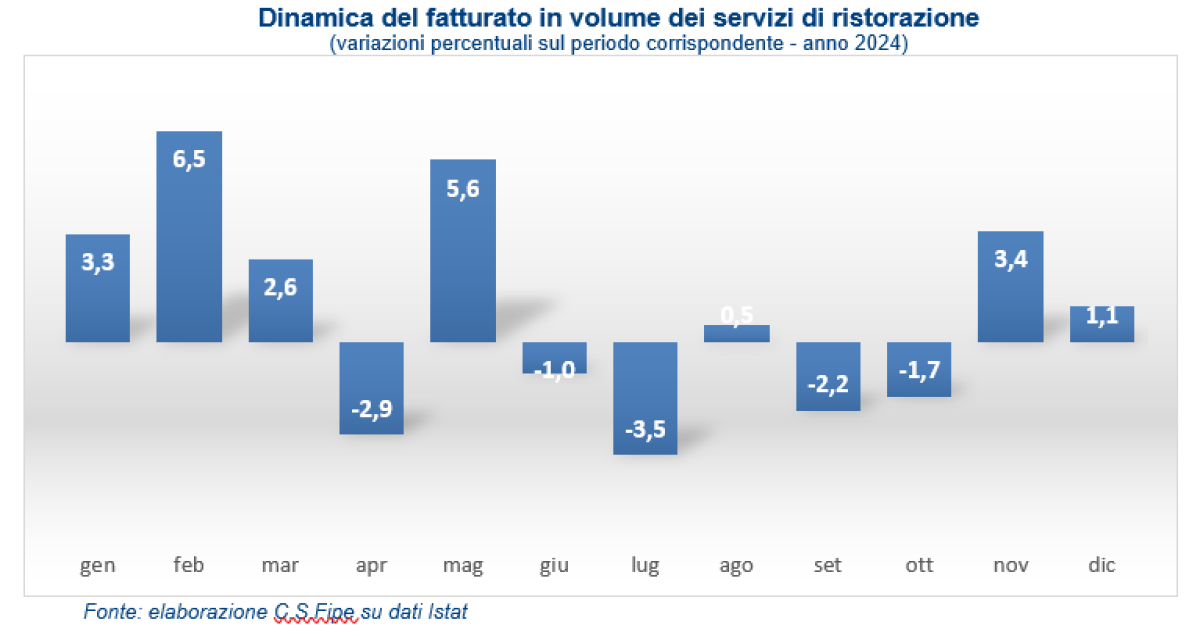 Cresce poco, ma cresce il business della ristorazione italiana che a dicembre 2024 ha visto il fatturato delle imprese del comparto registrare una crescita reale dell’1,1% rispetto allo stesso mese dell’anno precedente. A metterlo nero su bianco sono i dati resi noti dall'Istat che certificano anche come, nella media dell’anno, a fronte del significativo rallentamento dell’economia, l’incremento sia stato dello 0,7%.